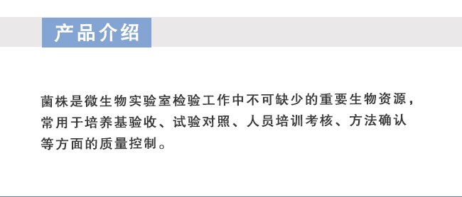 菌株是微生物实验室检验工作中不可缺少的重要生物资源,常用于培养基验收、试验对照、人员培训考核、方法确认等方面的质量控制。