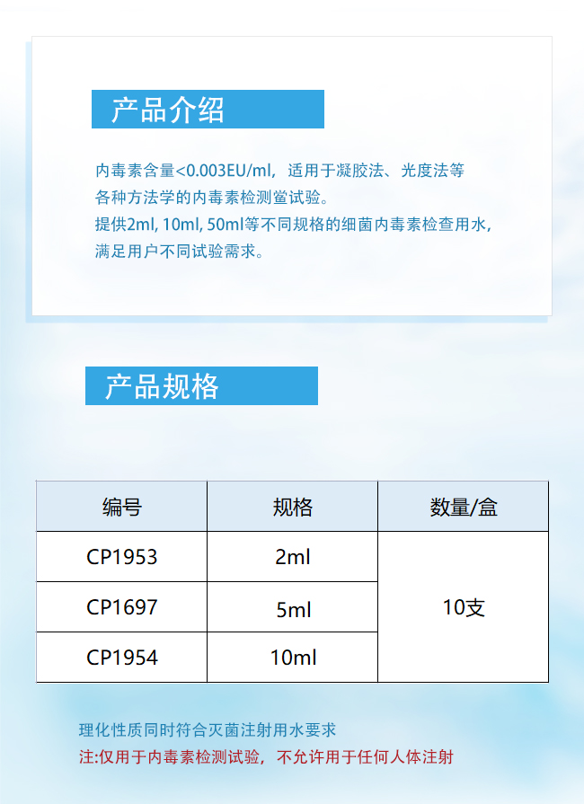 适用于凝胶法鲎试剂及定量法(光度法)鲎试验