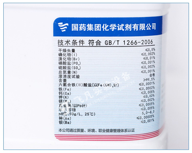 测定硝酸银的基准;微量测定氟和硅酸盐;高纯分析;血液常规检验;肝功能试验;制备细菌血清学培养基;致冷混合剂;食物保存;照相。