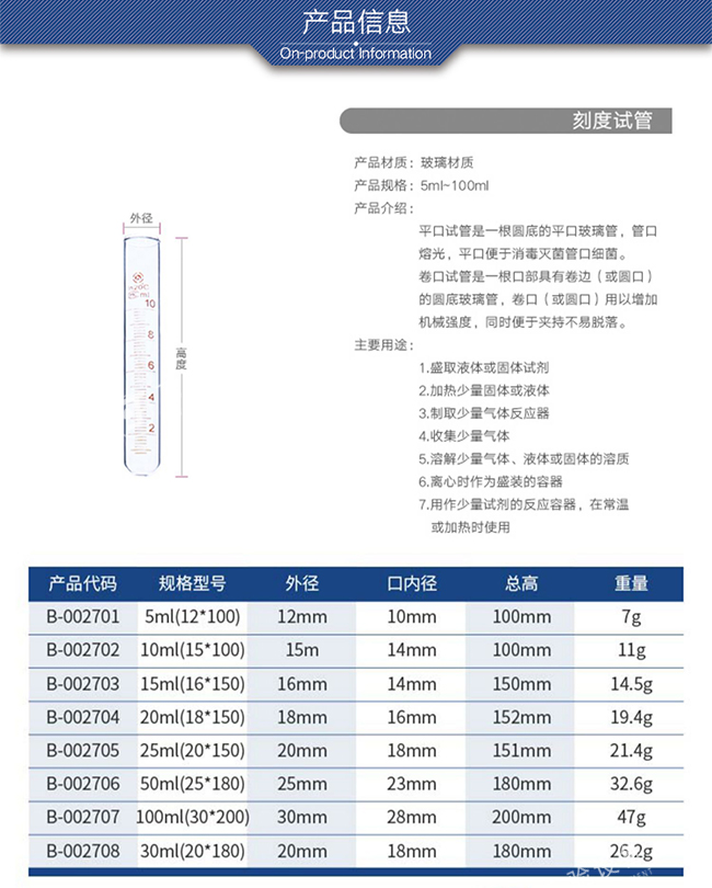 试管是一种盛放化学溶液,或者使少量化学试剂在常温或者加热情况下发生化学反应的玻璃器皿