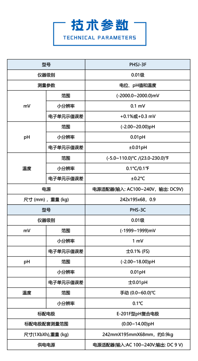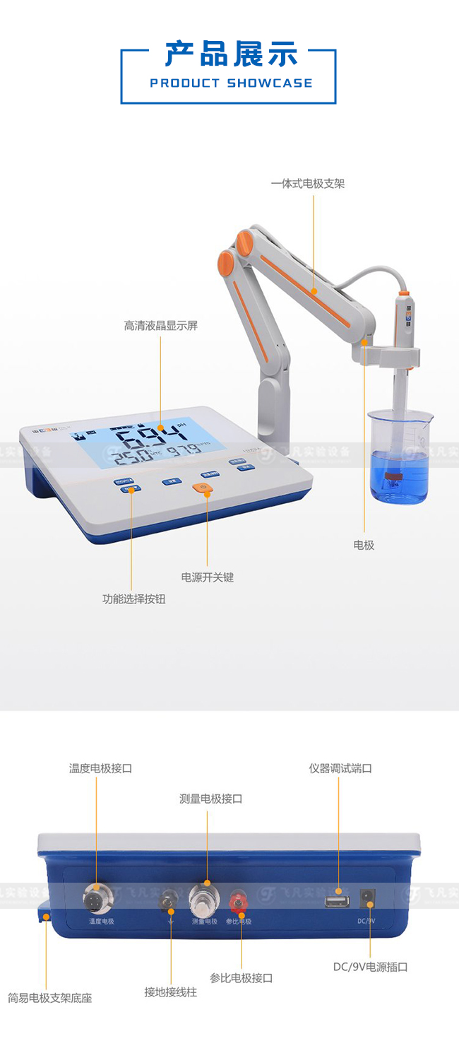 测量范围pH:(0~14.00)pH,mV:(0~±1999)mV,最小显示单位0.01pH,lmV