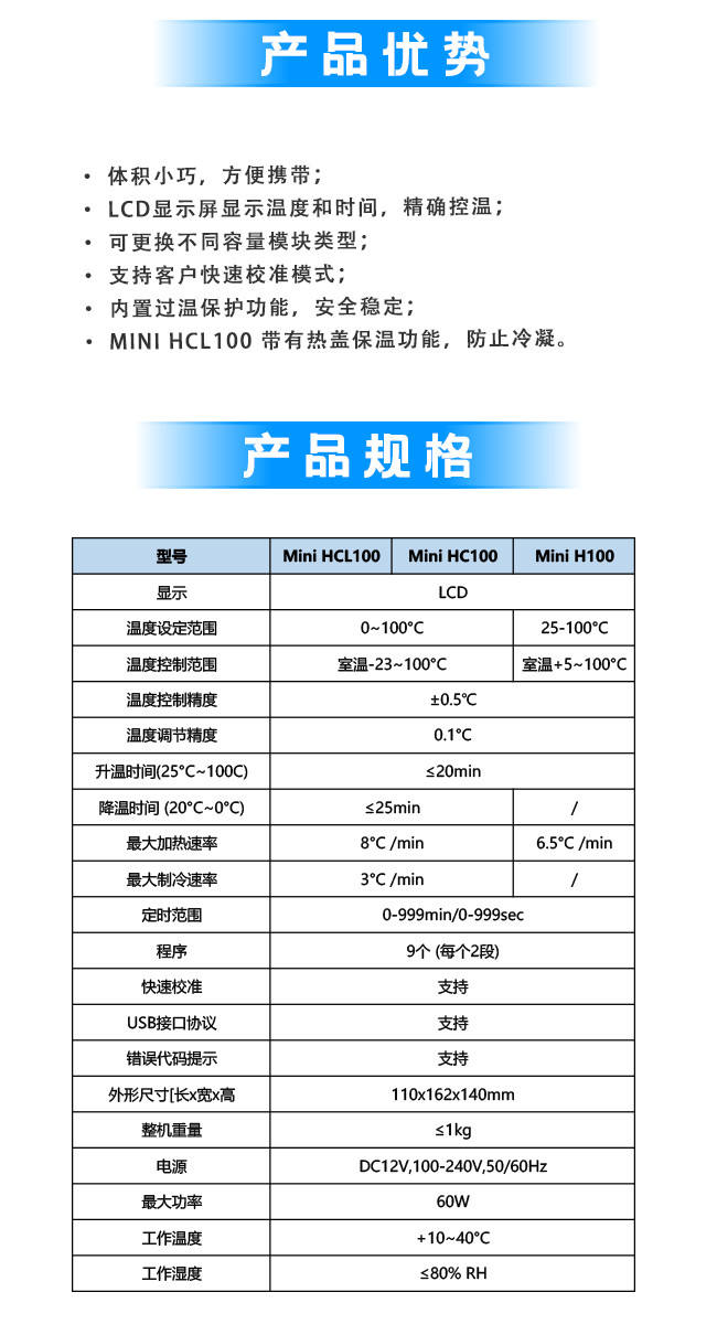 温度设定范围25~100℃,温度控制范围室温+5~100℃,最大功率60W
